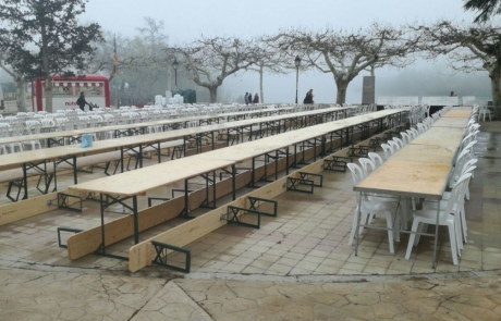 Tenim infraestructura i material per a les festes més autèntiques i les nostres de sempre, com festes al carrer, festes majors, associacions … Transportem i muntem tot el necessari per donar servei a esdeveniments amb assistència de gent massiva. Tenim escenaris modulars en lloguer, carpes …